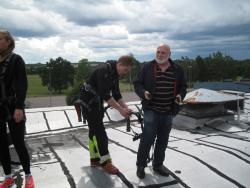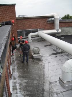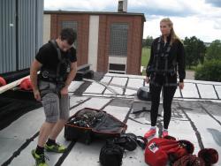 Mats Isabell och Anders gick kursen i fallskydd. De trotsade vädret och lärde sig hur man ska förhålla sig på höga höjder.