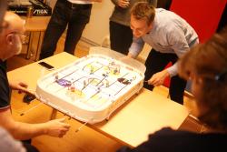 Kvällen till ära var det dags att kora företagets skickligaste hockeyspelare. Potatismjölet yrde på "isen" och vi fick hålla i sargen för att inte spelet skulle hamna på golvet.