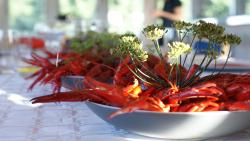 hamnade på surströmming.. Men majoriteten avgjorde tvisten om vilka läckerheter det skulle bli...och kräftor blev det i massor!